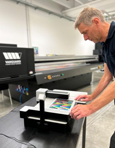 En el mundo en constante evolución de la impresión UV, donde la precisión, la uniformidad y la versatilidad son primordiales, disponer de un instrumento fiable de medición del color se convierte en un aspecto crucial del proceso. Vanguard Europe es la filial europea de Vanguard Digital Printing Systems, con sede en Brixen (Italia). La empresa, que forma parte del Grupo Durst, es fabricante de sistemas de impresión UV planos y de rollo a rollo para los sectores de la señalización, la decoración, la industria y el embalaje. Vanguard confía en el Spectro LFP qb de Barbieri para garantizar una precisión de color y una reproducibilidad óptimas en una amplia gama de aplicaciones y sustratos.