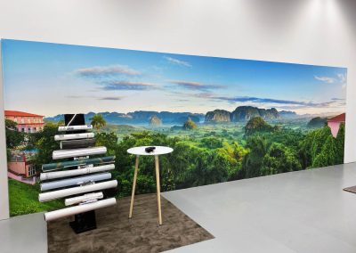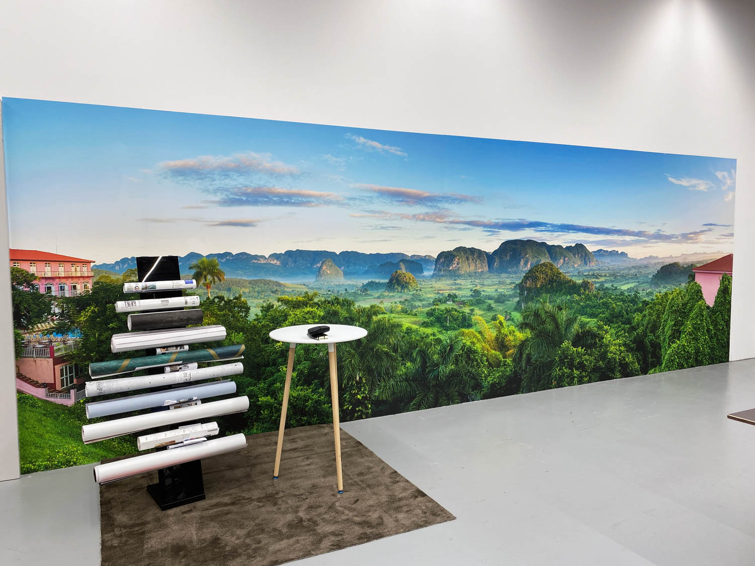 Utilizamos nuestro Barbieri Spectro LFP qb junto con el Calibrador de PrintFactory para perfilar y calibrar una amplia variedad de materiales en nuestras prensas HP Latex 3600. Para las pruebas de los nuevos suelos de impresión de papel pintado utilizamos una HP Latex 365.