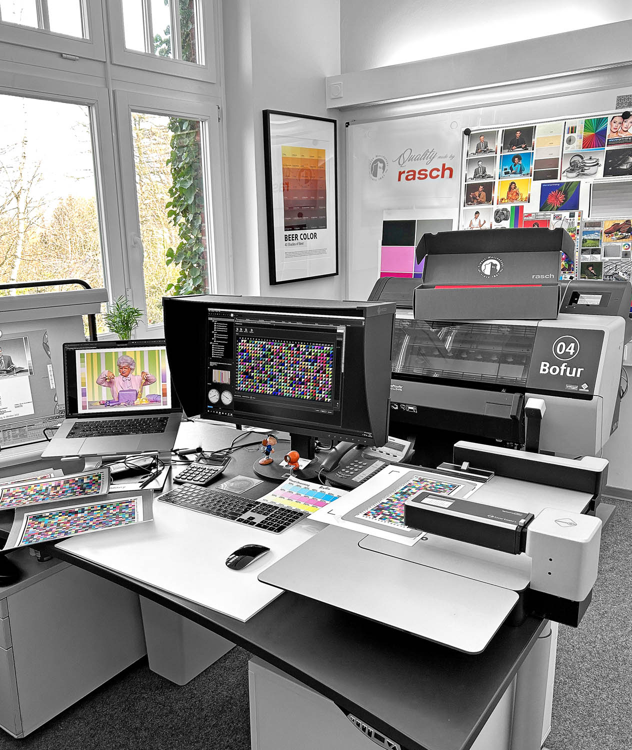 Me llamo Jörg Trennhaus y dirijo los departamentos de preimpresión e impresión digital de la fábrica de papel pintado Rasch. Gracias a la excelente recomendación de Birgit Jemide de inimap, hemos podido elevar la calidad y la velocidad de la medición espectral a un nuevo nivel con nuestro nuevo Barbieri Spectro LFP qb. Una amplia variedad de sustratos -desde papel pintado no tejido y textil hasta materiales exóticos como el papel pintado de sisal o bambú- ya no son un problema gracias a las grandes aberturas de medición. Estoy sencillamente encantado con la precisión y robustez del aparato Barbieri.