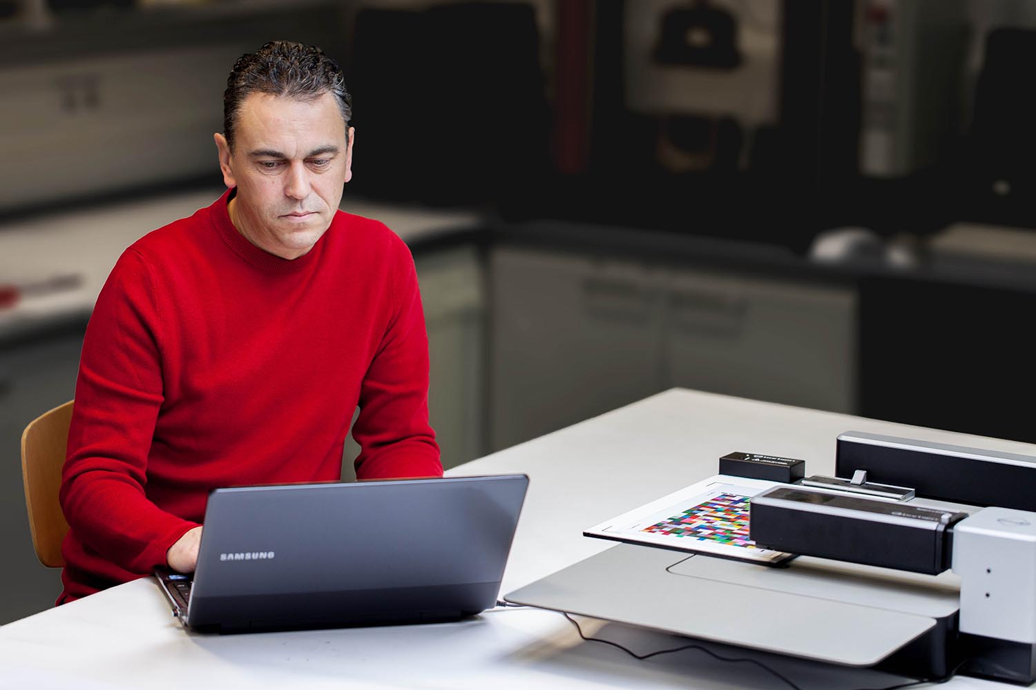 Da molti anni utilizziamo strumenti Barbieri. Funzionano in modo molto affidabile e possono essere utilizzati in modo flessibile. Posso rimuovere la testa di misura dal gruppo tavola e verificare le stampe direttamente sulla macchina durante la produzione. I dispositivi funzionano in modo rapido e silenzioso, quindi posso utilizzarli anche in ufficio. Inoltre, abbiamo un materiale molto aperto, soprattutto nella stampa tessile (bandiere), dove l’ampia apertura di misura di 8 mm può essere sfruttata al meglio.